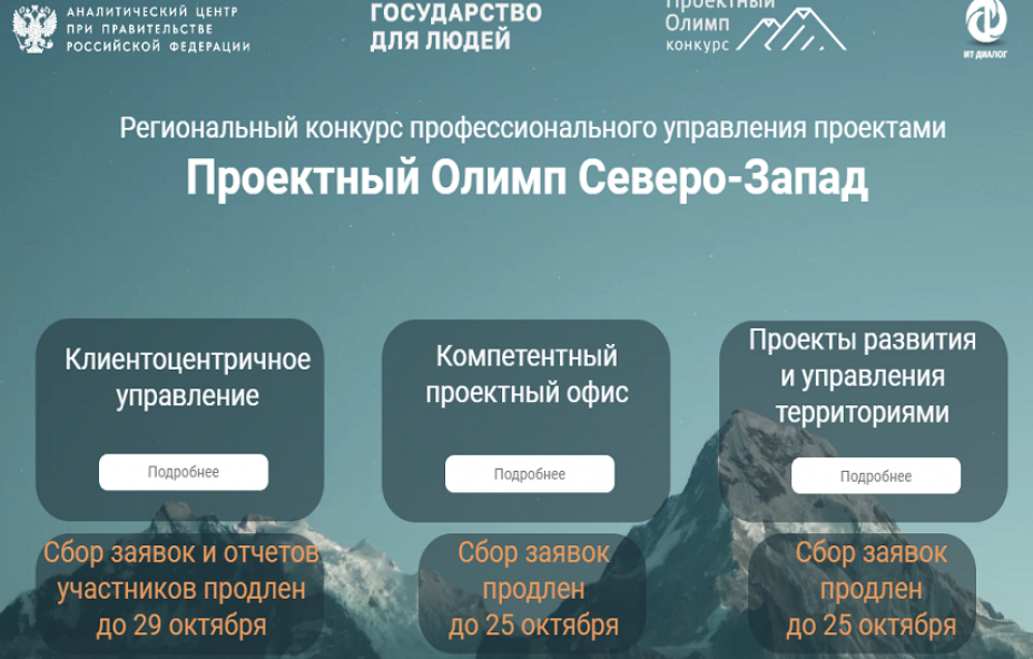 Аналитический центр при правительстве Российской Федерации совместно с правительством Санкт-Петербурга проводят региональный этап общероссийского конкурса «Проектный Олимп» — «Проектный Олимп Северо-Запад».